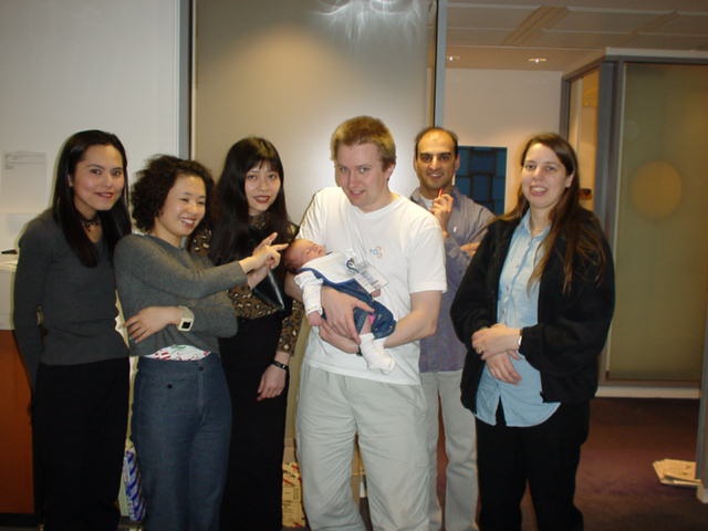 | Now she's just a fraction over 6 months. Still no talking, but she likes "singing", and performs some dreadful duets with mummy or daddy! She's not crawling (some people think she might just skip that and start walking), but she's very good at rolling one way or another to reach things - like the cats, for example! She loves grabbing ANYTHNG and of course sticking things straight in her mouth - she's probably teething. Her favourite party trick is grabbing mummy or daddy's drinking glasses and tucking into coke, cider, wine, whatever's available! Why use that 'orrible plastic tippee thing full of water, when there's real crystal tumblers around with much tastier drinks? :-) She's also great at sitting up by herself, without needing hand support. This is apparently very advanced. |